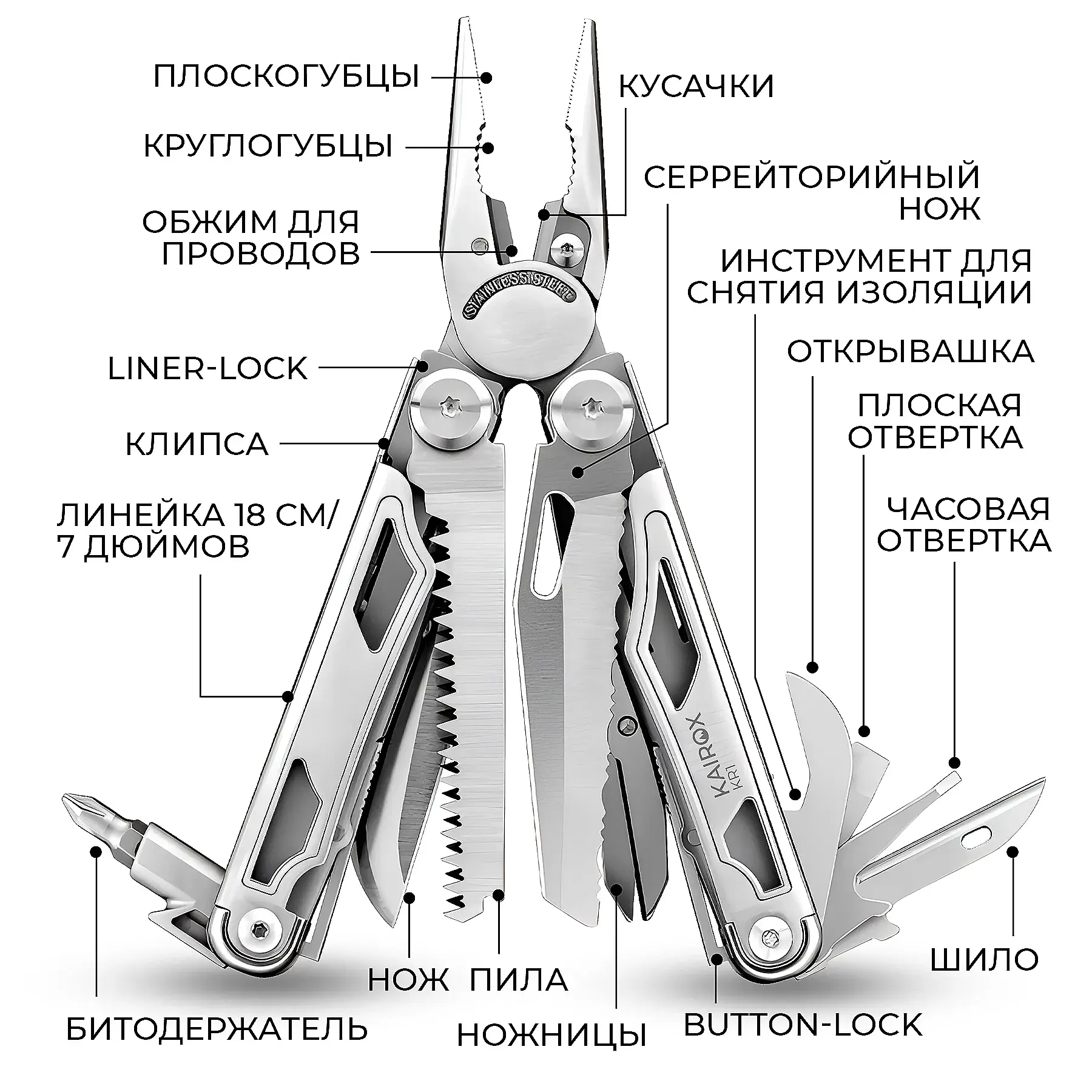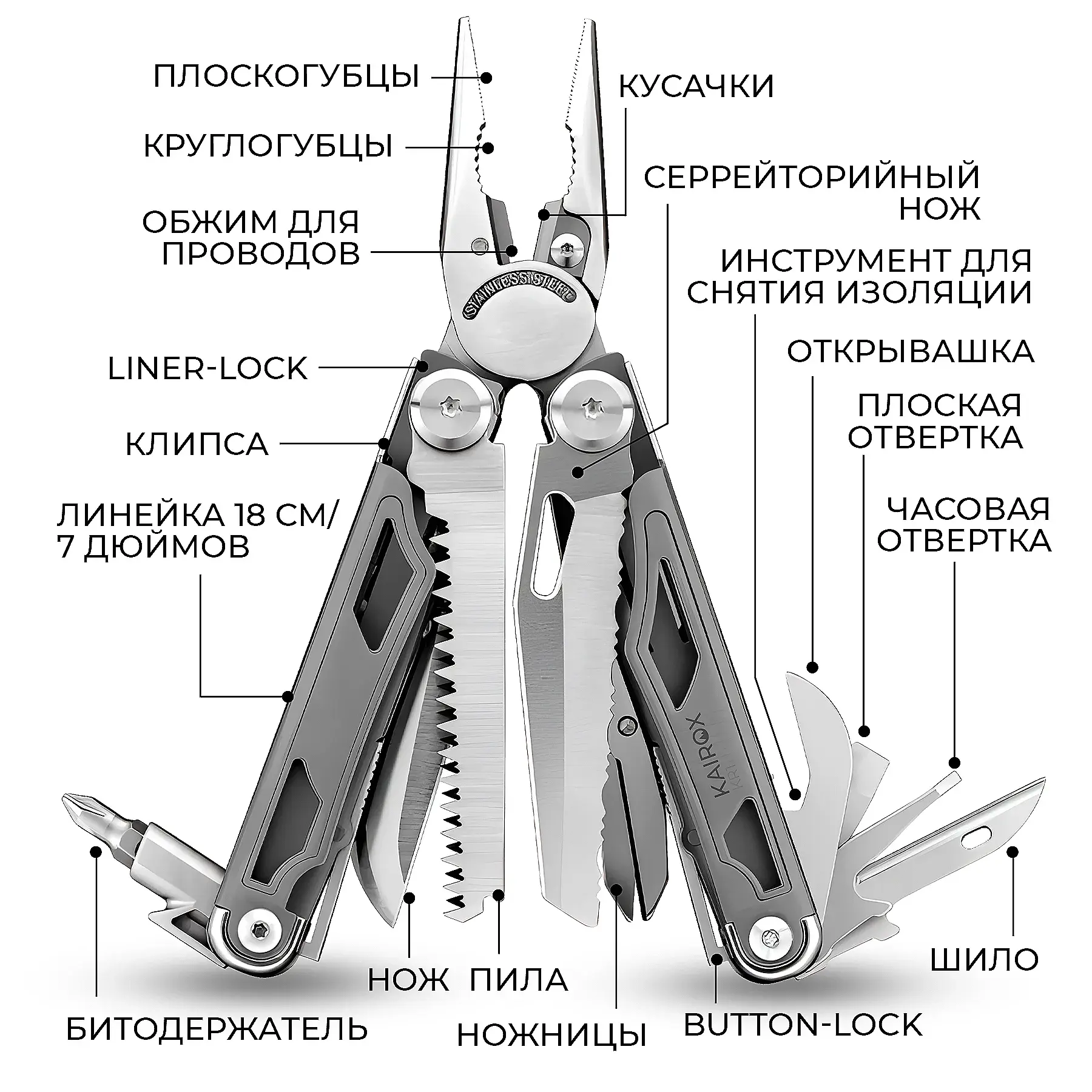 Мультитул KaiRox KR1 — мощный универсальный инструмент 17 в 1