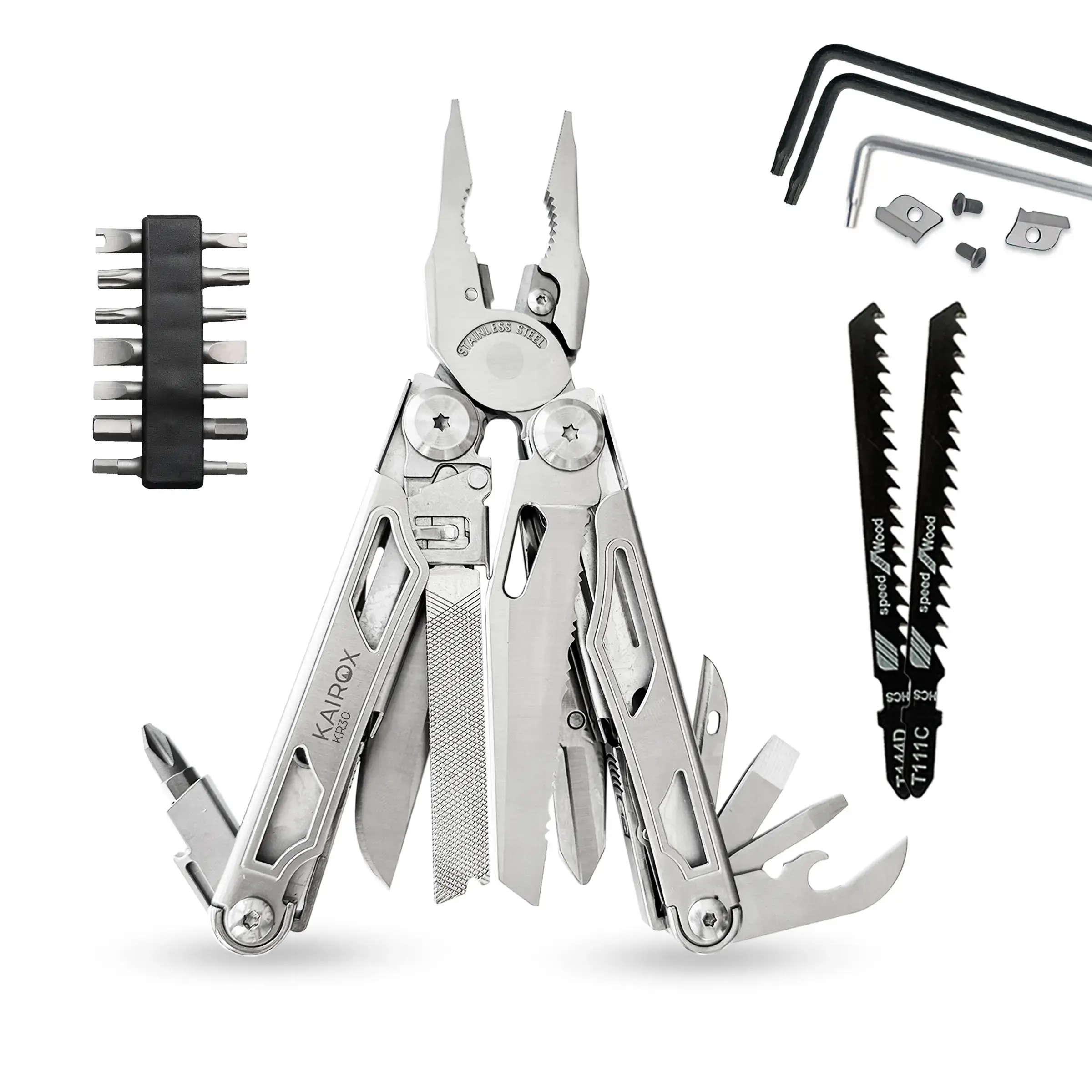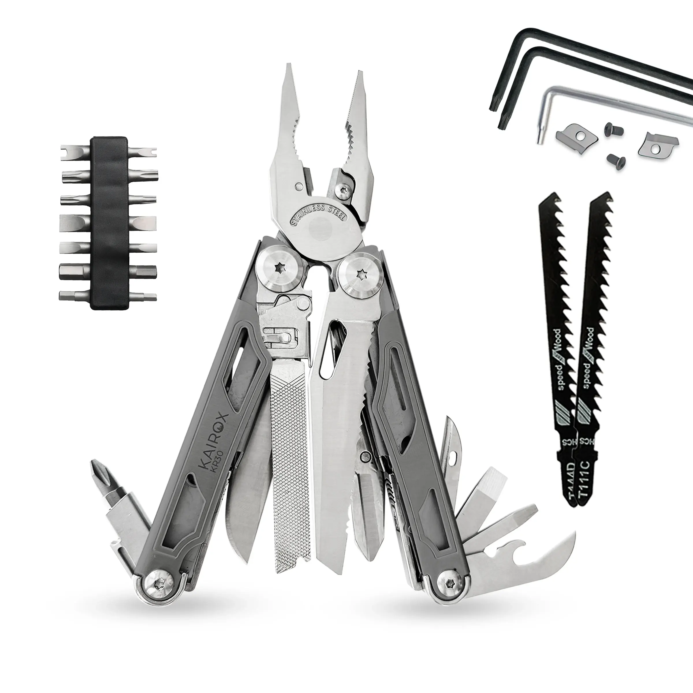 KaiRox KR30 — компактный, надёжный и функциональный мультитул с 34 функциями, качественными материалами и продуманной конструкцией. Он собран специально для тех, кто хочет иметь под рукой рабочий инструмент на каждый день — дома, в дороге или на природе.