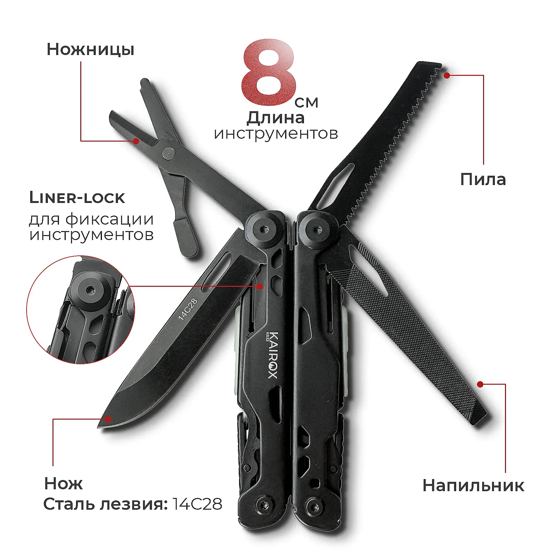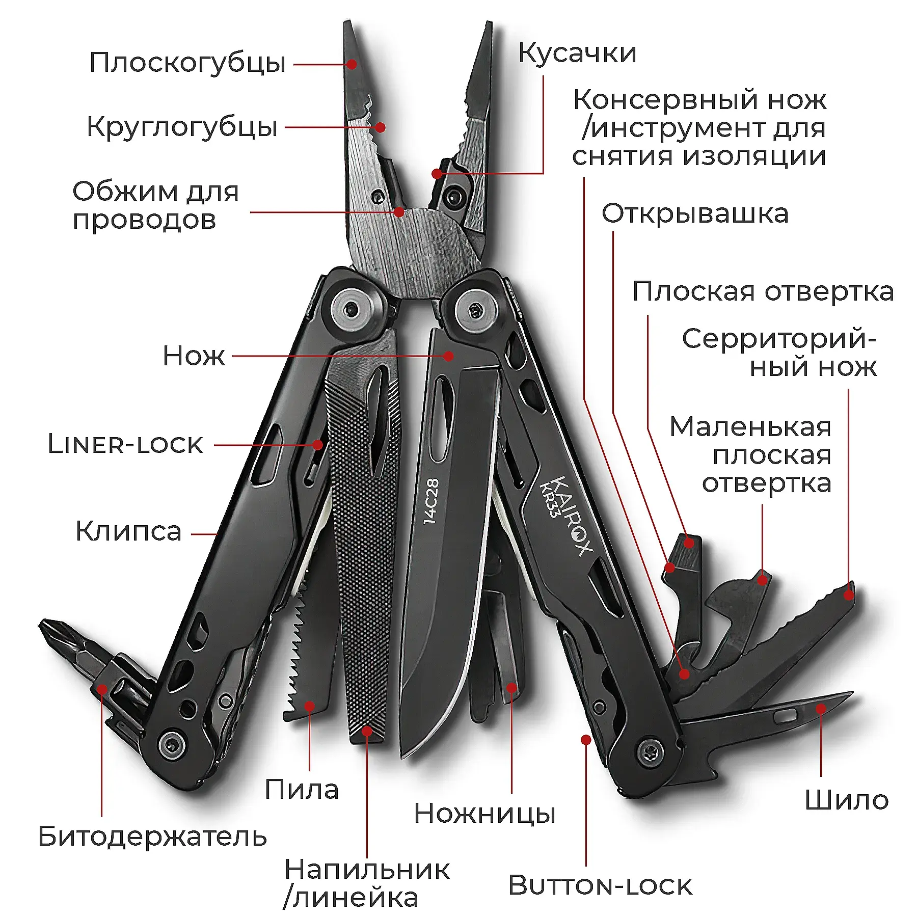 Мультитул KaiRox KR33 — универсальный инструмент для туризма, путешествий и повседневной работы